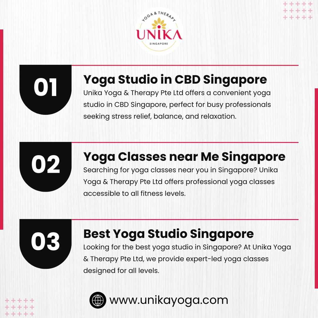 Looking for the best yoga studio in Singapore? At Unika Yoga & Therapy Pte Ltd, we provide expert-led yoga classes designed for all levels. Our studio focuses on alignment, mindfulness, and holistic wellbeing. From beginners to advanced practitioners, our teachers ensure personalized guidance. Join us to experience balance, flexibility, and strength in a nurturing environment.